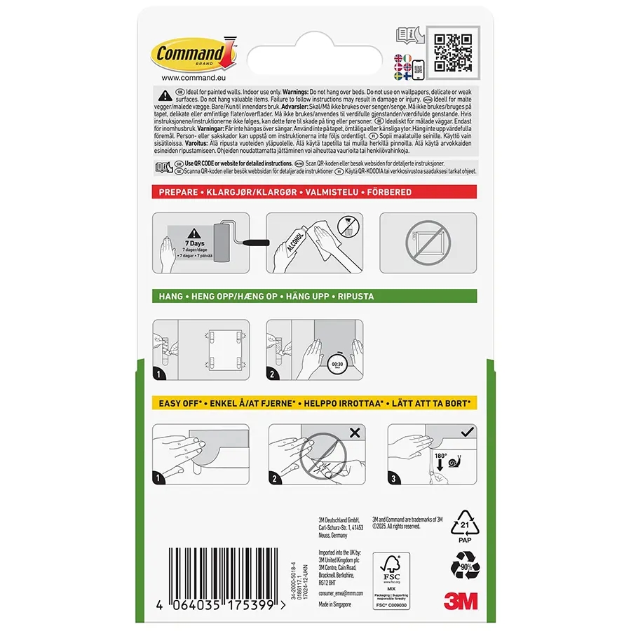 12 sæt billedophæng – 8 medium og 4 små. Nem og hurtig montering med de selvklæbende monteringsstrips. Ingen brug af hverken værkøj eller skruer og ingen huller i væggen